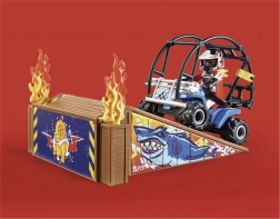 Pokrenite show do maksimuma s PLAYMOBIL kaskaderskim setom! Gledajte kako kaskader juri na četverociklu, projuri kroz vatrenu rampu i izvede zadivljujući salto. Set je sjajan uvod u svijet Stunt Showa i potiče kreativno pripovijedanje.