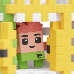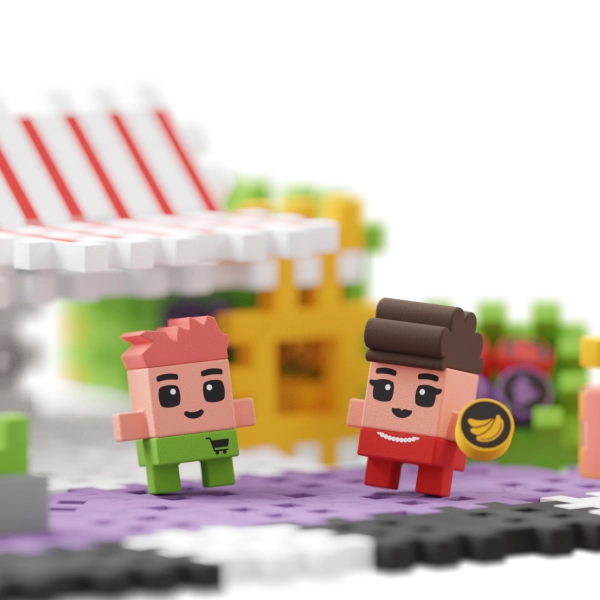 Set trgovine sadrži čak 148 kocaka i dvije originalne figure, od kojih se jedna dobro oznoji opskrbljujući stanovnike svježim namirnicama. Složite set prema uputama i kombinirajte ga s drugim setovima iz serije Waffle City koji zajedno oživljavaju grad. Naravno, ne bez pomoći vaše mašte! A kad s vašim mališanom dođete na novu ideju, iz elemenata seta možete izgraditi potpuno novu i fascinantnu građevinu.