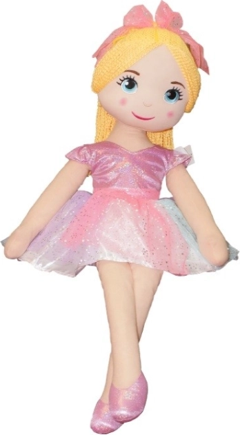 Velika tekstilna lutka Adelina ružičasta 80 cm. Mekana, podatna, sa sigurno vezenim detaljima i živim bojama. Sjajna za kreativnu igru i maženje.