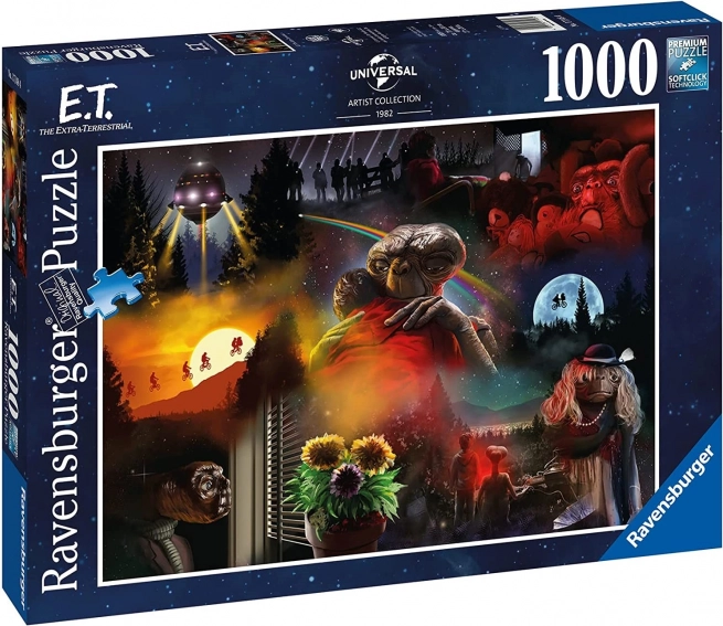 Uživajte u kvalitetnoj slagalici brenda RAVENSBURGER s motivom legendarnog filma E.T. izvanzemaljac. Set od 1000 dijelova nudi preciznu izradu, SoftClick Technology za točno spajanje te površinu sa strukturom prirodnog lana za oštru i neodsjajnu sliku. Idealno za opuštanje, trening koncentracije i strpljenja za uzrast od 14 godina naviše.