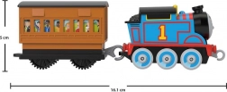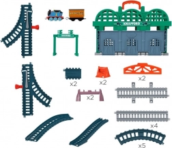 Lokomotiva THOMAS na guranje vozi po plastičnim tračnicama, preko mosta i pored signalizacije. Djeca mogu slobodno slagati i mijenjati rutu.