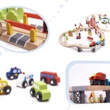 Drvena vlakovska staza savršena je igračka za djecu koja omogućuje kreiranje raznih krajolika i scenarija. Set sadrži ukupno 70 dijelova koji nude neograničene mogućnosti za građenje i igru. Igra s ovom stazom razvija finu motoriku, koordinaciju ruku i očiju te logičko razmišljanje.
