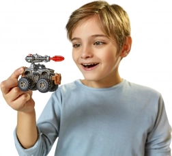 Jednostavno sklopiv kamion s masivnim gumama, detaljnom karoserijom i funkcionalnim lanserom za bitke i kaskaderske trikove.