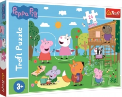 Slagalica s motivom likova iz serije Prasica Peppa savršeno je rješenje za zajedničke trenutke provedene s obitelji ili prijateljima. Zahvaljujući ovoj igri djeca ne samo da će poboljšati svoje sposobnosti, već će ojačati obiteljske veze i naučiti raditi u timu. Puzzle su prikladne za djecu od 3 godine, jer su njihovi dimenzije prilagođene malim dječjim rukama.