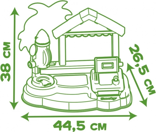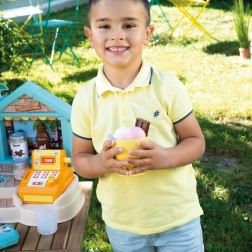 Bogati set od 38 dodataka uključuje uređaj za sladoled, kornete i kuglice, žlicu za sladoled, voćni ražnjić, posipe, posuđe, pribor za jelo i blagajnu. Zahvaljujući kompaktnim dimenzijama, štand je odličan za vrt, park i plažu – idealan za male domaćine ljetnih zabava.
