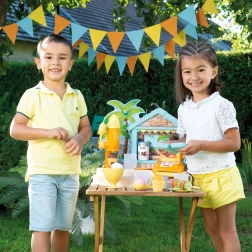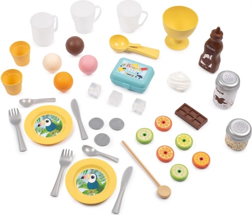 Djeca mogu miješati osvježavajuće napitke, posluživati kuglasti sladoled i ukrašavati slatkim posipima. Realistična oprema pretvara svaku igru u mali ljetni festival okusa.