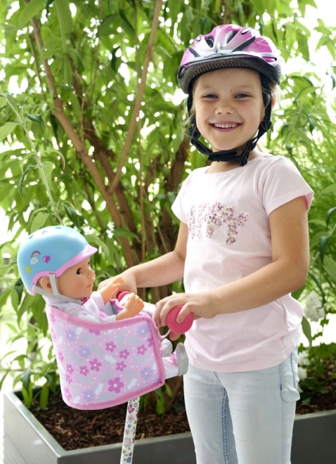 Priredite djeci još realističniju igru tijekom vožnji na otvorenom. Tekstilna ciklistička sjedalica za lutke NEW BORN BABY s nježnim cvjetnim uzorkom dizajnirana je za siguran i udoban prijevoz lutke na upravljaču bicikla ili romobila. Integrirani sigurnosni pojas s jednostavnim zatvaranjem pouzdano drži lutku na mjestu, dok meka podstava štiti od udaraca.