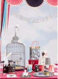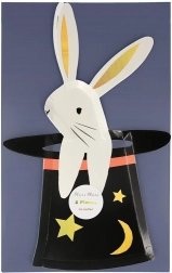 Otkrijte očaravajuće papirnate tanjure Abrakadabra brenda MERI MERI, koji će vašu proslavu pretvoriti u magičan show. Motiv kunića u cilindru oduševit će djecu i odrasle te će se savršeno uklopiti u mađioničarski ili cirkuski party dekor. Zahvaljujući pažljivoj izradi i atraktivnom izgledu, tanjuri će biti ne samo praktični, već i dekorativni.