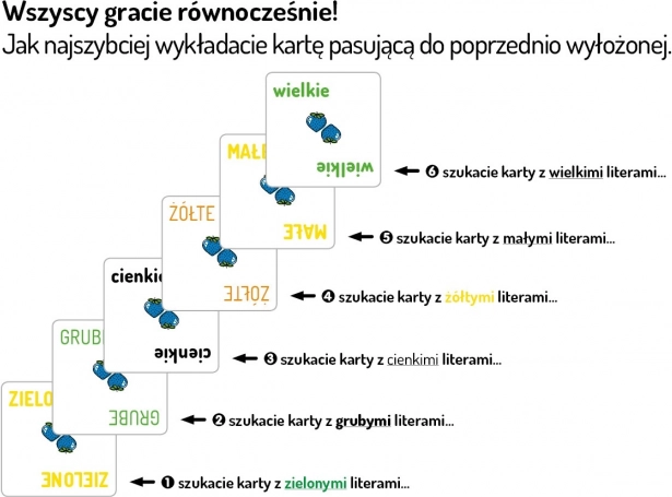 Igrate svi istovremeno! Pokušavate što brže izložiti sve karte na stol. Da biste pobijedili, morate biti pronicljivi i brzi!