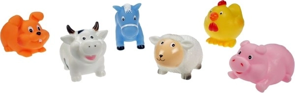 Otkrijte zabavu tijekom kupanja i igre na suhom s gumenim špric životinjicama s vesele farme. Zahvaljujući ugodnom mekom materijalu lako se stišću, a djeca će ih voljeti zbog njihova prijateljskog izgleda i jednostavnog rukovanja. Igračka je dizajnirana s naglaskom na sigurnost najmlađih.