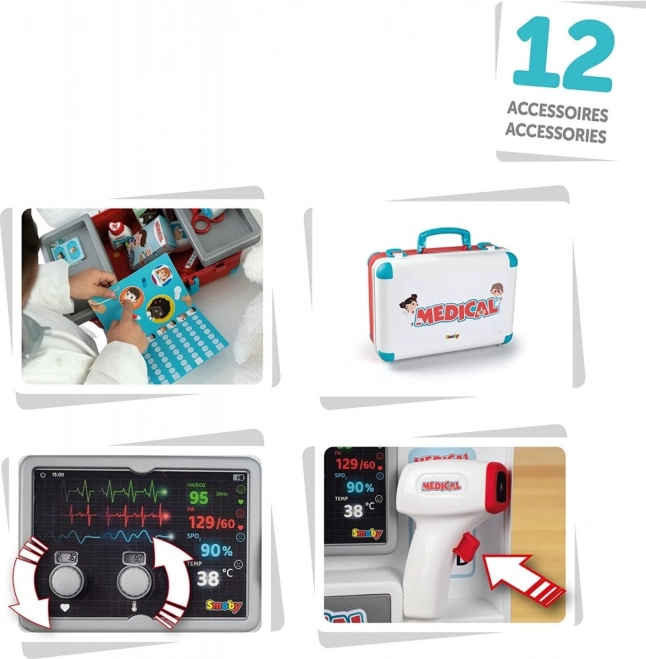 Omogućite svom djetetu da postane mali liječnik uz ovaj bogato opremljeni liječnički set od Smoby. S 12 dijelova poput mehaničkog toplomjera, stetoskopa i injekcijske štrcaljke, vaše dijete će imati sve potrebno za njegu svojih 'pacijenata'.