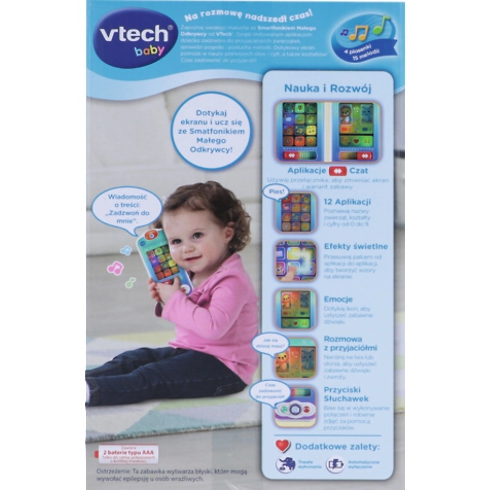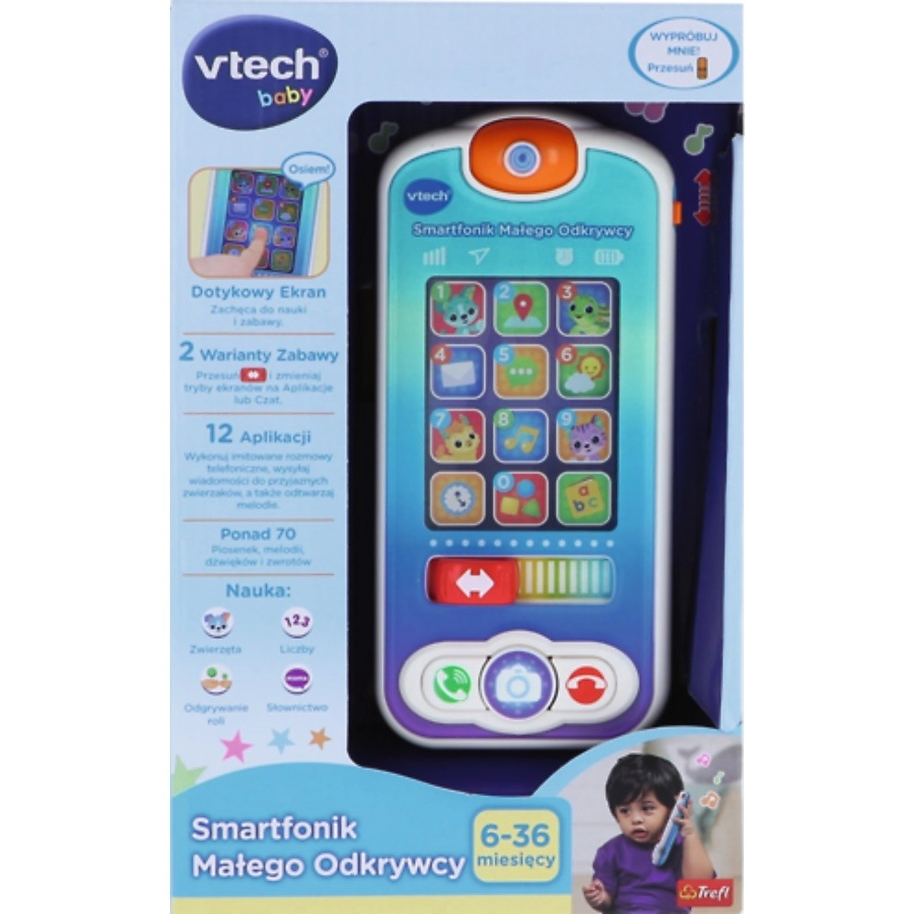 Interaktivni dječji pametni telefon Malog istraživača potiče prirodnu znatiželju djece. Imitirane aplikacije omogućuju „pozive“ prijateljskim životinjama, provjeru „vremenske prognoze“ i reprodukciju veselih melodija. Dodirni zaslon olakšava učenje prvih riječi, brojeva i oblika na zabavan način.