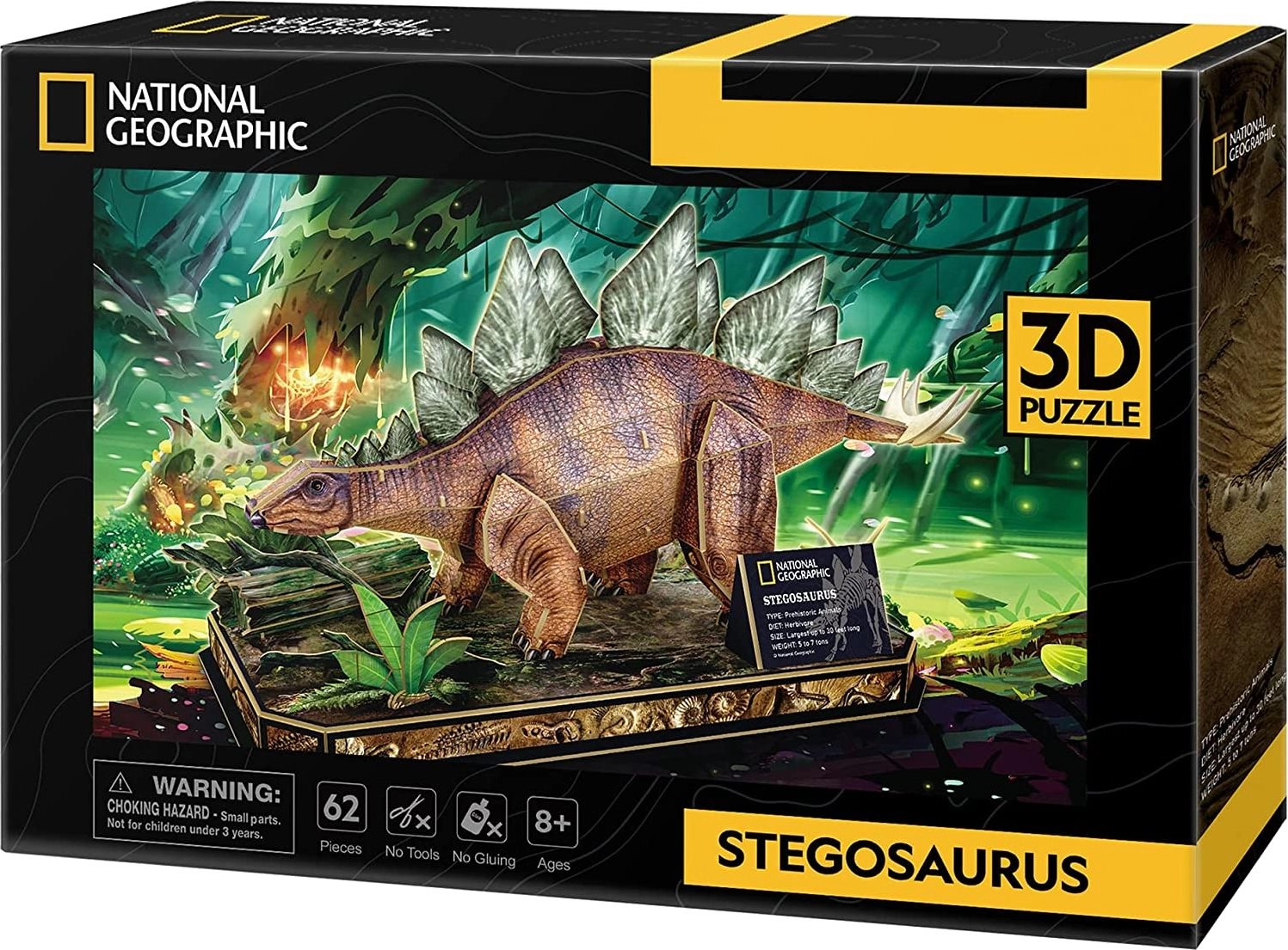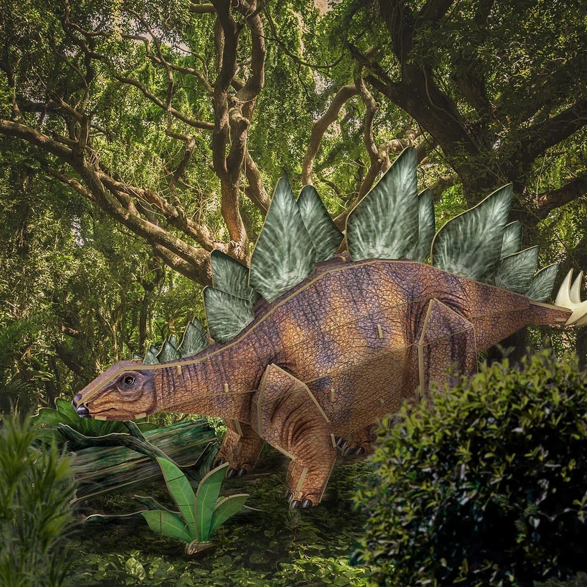 Set 3D slagalica s dinosaurima. Model stegosaura koji se sastoji od 62 dijela. Ove 3D dinosaurus slagalice izrađene su od unaprijed izrezanog papira i pjenaste kartonske ploče, koja je sigurnija od metala i drva, realističnija i lakša od plastike. Ilustrirane upute omogućuju malim graditeljima da sami sastave modele.