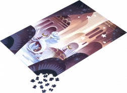 Ova slagalica od 1000 dijelova stvara po dovršetku sliku dimenzija 48 × 68 cm. U kutiji vas dodatno očekuje jedinstvena karta za igru DIXIT koju nećete naći drugdje – idealno za kolekcionare i obožavatelje ove omiljene obiteljske igre.
