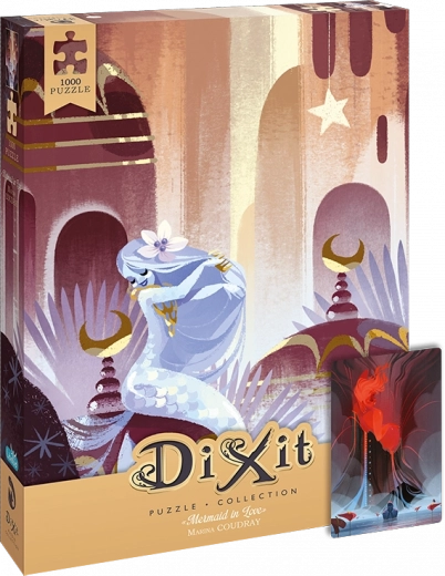 Puzzle DIXIT: Zaljubljena morska sirena – 1000 dijelova, 48 × 68 cm. Ilustracija Marina Coudray i u pakiranju ekskluzivna karta za igru DIXIT.