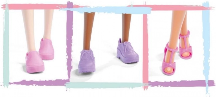 Ružičaste i ljubičaste tenisice ili sandale daju svakom outfitu poseban šarm i naglašavaju modni stil lutke.