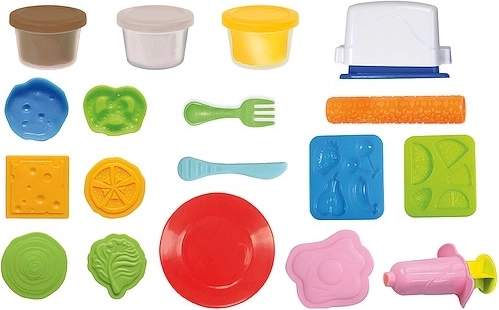 Ovaj kreativni set dječjeg plastelina pretvara stol u igru. Djeca se mogu igrati kuhara i od mekanog plastelina izrađivati toste, kriške sira, povrće i druge “poslastice”. Zahvaljujući jednostavnim alatima, oblikovanje je brzo i zabavno.
