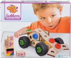 Otkrijte kreativni svijet setova EICHHORN CONSTRUCTOR. Ovaj drveni set nudi 3 modela u 1 – formulu i dva različita trkaća automobila. Zahvaljujući 35 dijelova od bukovog drva i šarenim plastičnim spojnim elementima, djeca razvijaju finu motoriku, prostorno razmišljanje i kreativnost. Kvalitetna izrada Made in Germany, 100% FSC certificirano drvo i sigurne boje na bazi vode osiguravaju sigurnu i zabavnu igru od 3. godine.