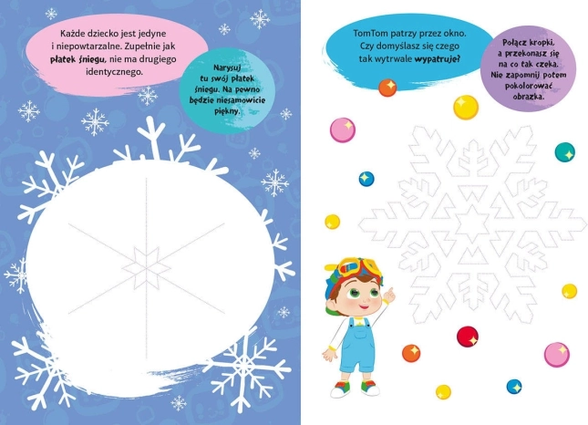 Aktivnosti potiču finu motoriku, koordinaciju ruka–oko te opažanje boja i oblika. Naljepnice pomažu pri rješavanju zadataka i pojačavaju zadovoljstvo dovršavanjem. Idealno za zajedničke trenutke tijekom blagdana i dugih zimskih večeri.