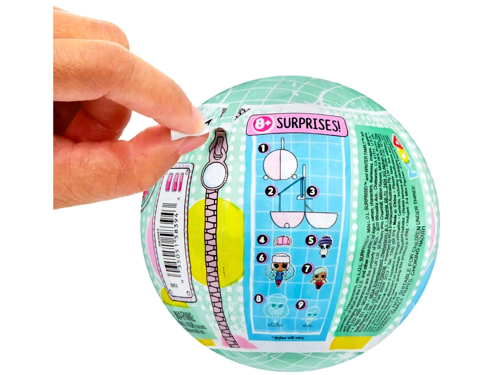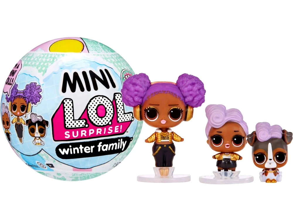 Otkrijte magični svijet minijatura s čarobnom loptom L.O.L. Surprise O.M.G. Mini Family. Svaki set nudi čarobnu mješavinu mini-obitelji s preslatkim životinjama ili mini-prijateljima i njihovim omiljenim ljubimcima. Uživajte u zimskoj kolekciji u punom sjaju, gdje svaka kugla skriva iznenađenje. Otvorite zimske kugle i saznajte što se nalazi unutra – možda ćete otkriti DJ sestre i njihovog sretnog psa ili prekrasnu Ledenu princezu s njezinim najbližima.
