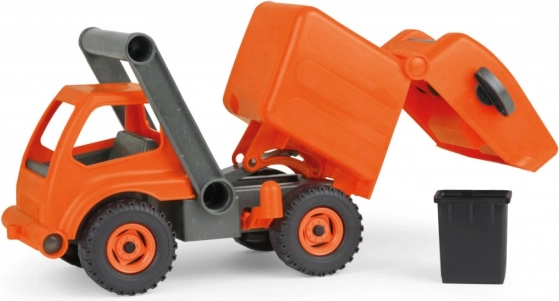 Ekološki kamion za smeće za djecu od 2 godine izrađen od reciklirane plastike s dodatkom drva. Potpuno mehanički, s nagibnom kabinom i osiguračem protiv neželjenog kipanja. Zahvaljujući izdržljivoj izvedbi spreman je za igru u kući i na otvorenom. Dimenzije: 31 × 15 × 19 cm.