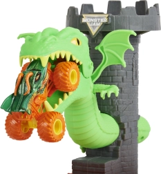 1× Monster Jam kamion Dragon 1:64, 1× izbacivač, 1× lansirna rampa, 2× element lave, 2× mala rampa, 1× sklop zmaj i toranj, 1× dvoranski toranj, 2× zmajeva krila, 2× zmajeve ruke, 1× zmajev rep, 1× upute