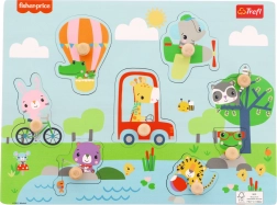 Preslatka drvena umetaljka s licencom Fisher-Price spaja zabavu i učenje u jednom. 8 šarenih dijelova s drvenim gumbićima lako se drži, a podloga s urezanim oblicima i crno-bijelim sugestijama pomaže pri pravilnom smještanju. Odlično za razvoj fine motorike, koordinacije i prepoznavanja oblika od 18 mjeseci.