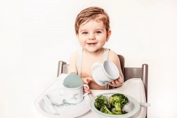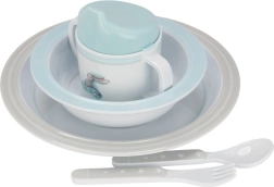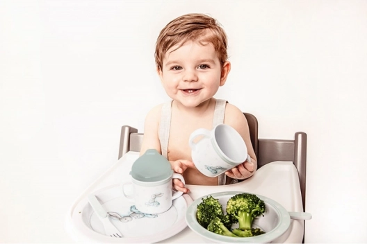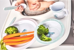 Protuklizna guma na priboru osigurava čvrsto prianjanje na stolu, što je idealno za malu djecu kako bi mogla samostalno jesti.