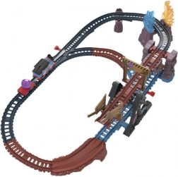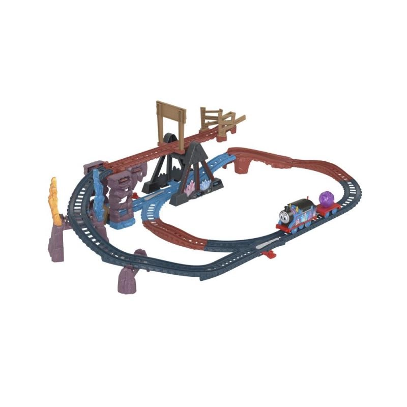Krenite s Thomasom u kristalnu avanturu! Ovaj akcijski set željezničke pruge donosi višerazinsku trasu s pokretnim mostom, križanjem i tematskim “kristalnim” elementima. Jednim preklopnikom na krovu vlakića Thomas pokreće se po tračnicama i prevozi teret u špilju.