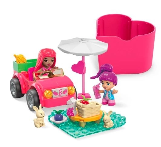 Konstruktor MEGA Barbie Color Reveal donosi zabavu punu tajni i mašte. Svaka mikrolutkica ima skriveni izgled koji čeka otkrivanje, a dodatno će vas razveseliti i mirisna iznenađenja. Sastavite stilski ružičasti kabriolet, posjednite lutkice unutra i uživajte u čarobnom pikniku s dva preslatka zečića.