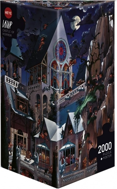 Uživajte u satima zabave sa stiliziranim puzzleom karikaturista Loupa. Ova velika slagalica s motivom ukletog dvorca nudi 2000 dijelova, zapakirana je u nekonvencionalnu trokutastu kutiju i sadrži plakat kao predložak. Dimenzije složene slike su približno 68 × 96 cm.