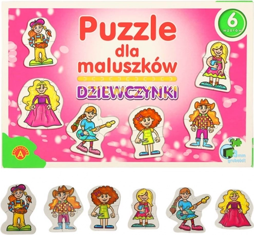 Set sadrži ukupno 27 dijelova podijeljenih u 6 sličica s djevojačkom tematikom. Zahvaljujući debljini od 3 mm dijelovi se lako drže malim ručicama i dobro pristaju jedan uz drugi. Odlično kao poklon i kao aktivnost za zajedničku igru s roditeljima.