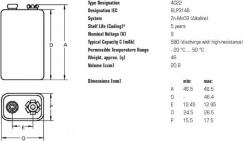 Alkalna tehnologija Zn–MnO2, tipični kapacitet do 580–640 mAh i radne temperature oko -20 °C do 50 °C za konzistentne performanse.