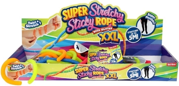 Naša Super Stretchy Ljepljiva Guma XXL može se rastegnuti do duljine 5 metara, što omogućava mnogo igračkih i kreativnih mogućnosti.