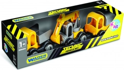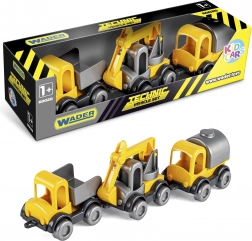 Otkrijte zabavan set triju građevinskih autića KID CARS brenda WADER, idealan za najmlađe od 12 mjeseci. Set sadrži kiper, dizalicu i cisternu, koji potiču razvoj mašte i kreativnosti. Izdržljiva plastična izrada i kompaktna duljina 10 cm savršeni su za male dječje ručice.