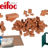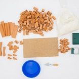 Doživi osjećaj pravih graditelja: promiješaj žbuku, namaži ciglice, sagradi kuću ili dvorac, potopi, osuši – i možeš graditi ponovno. Građevni set od pravih ciglica spojenih kukuruznom žbukom ne samo da vježba finu motoriku, već potiče i dječju kreativnost.
