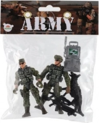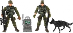 Doživite uzbudljive avanture s ovim setom vojnih figurica, koji omogućava djeci da uključe maštu i kreativnost u igranju borbenih scena. Set sadrži dvije figurice vojnika naoružane oružjima i jedinstvenog čuvarskog psa.