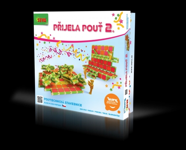 SEVA Stigao je sajam 2 je šarolik i raznolik konstruktor koji donosi djeci sate zabave i učenja. Zahvaljujući pametnom sustavu dijelova, lako je graditi razne sajamske atrakcije – od vrtuljaka do ljuljački – i stalno otkrivati nove mogućnosti.