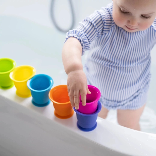 Igra s čašicama potiče finu i grubu motoriku, koordinaciju oko–ruka i raspoznavanje boja. Djeca mogu koristiti čašice za prelijevanje vode, razvrstavanje po veličini i boji ili kao prvu građevinsku igračku koja raste s njihovim vještinama.