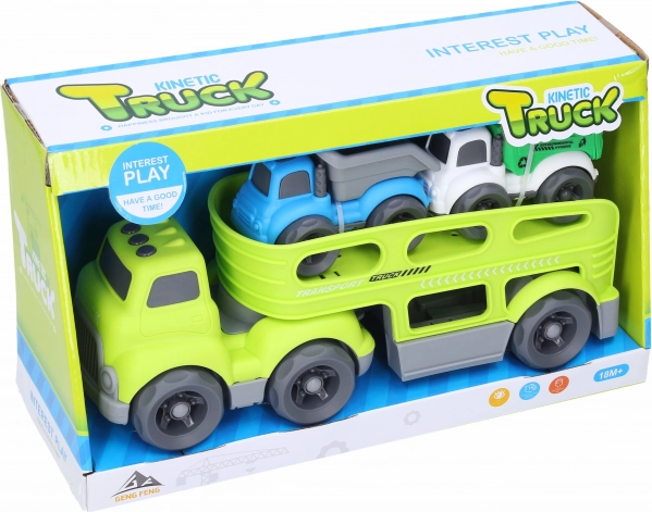 Tražite način kako lako i učinkovito prevoziti autiće? Ovaj robusni vučni kamion to će vam omogućiti! Dug je 30 cm, što pruža dovoljno prostora za smještaj do tri autića koji su dio pakiranja. Vučni kamion dostupan je u plavoj i zelenoj varijanti, tako da svatko može pronaći nešto za sebe.
