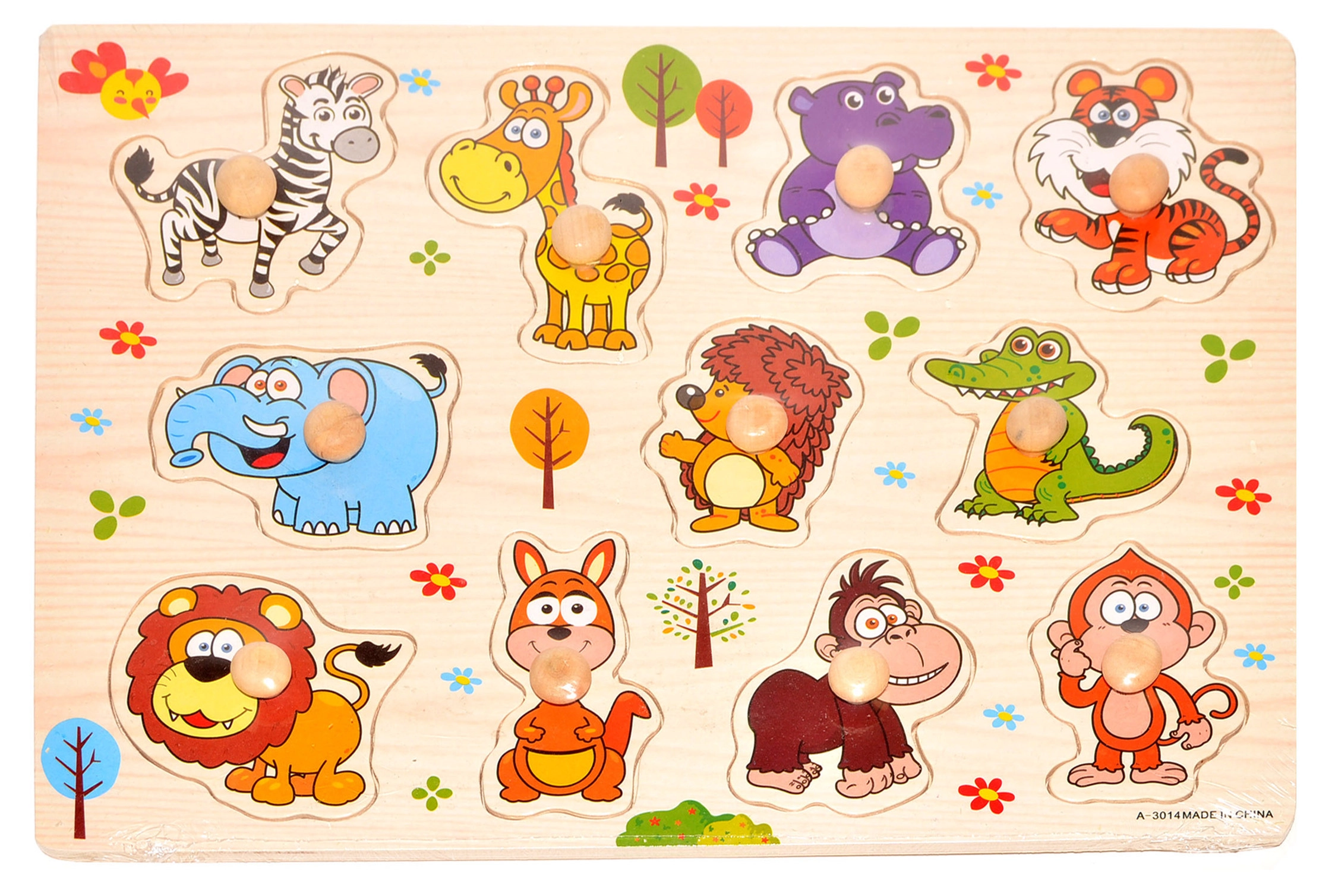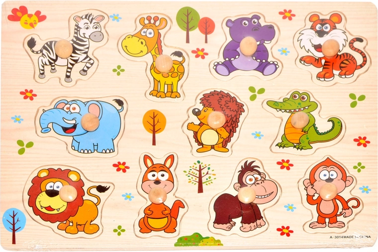 Ova kvalitetna drvena slagalica sa životinjskim motivima idealna je za dječje prve korake u učenju. Zahvaljujući čvrstim dijelovima lako se hvata i pomaže razvijati koordinaciju oko–ruka te strpljenje. Šarene ilustracije privlače pažnju i motiviraju djecu na igru.