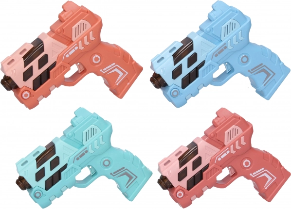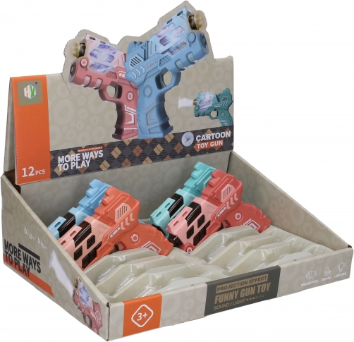 Zabavan dječji pištolj veličine 12 cm nudi svjetlosne i zvučne efekte i projekciju slike za još veću akciju. Dostupan u 4 varijante boja (plava, zelena, narančasta, ružičasta). Napajanje 2× AAA baterijama, koje nisu uključene u pakiranju.