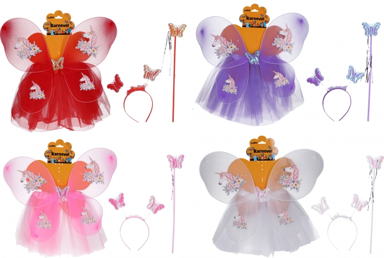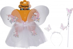 Karnevalski kostim vila savršen je izbor za male čarobnice koje žele zablistati na karnevalskoj zabavi ili tematskom događaju. Set uključuje suknju, krila, čarobni štapić i obruč za kosu za potpunu transformaciju u vilu.