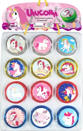 Zabavno jo-jo s motivom jednoroga donosi svjetlosne efekte pri svakom okretanju. Idealno za djecu od 3 godine, promjer 5,5 cm, baterije 2x AG3 uključene.