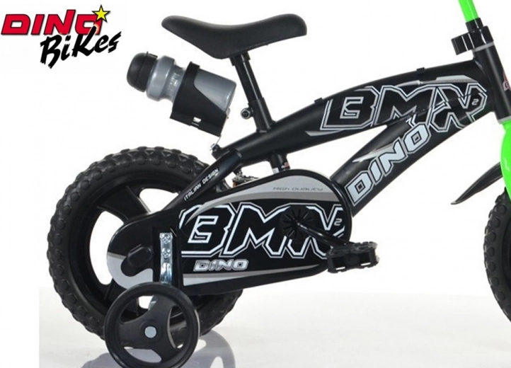 Dječji BMX bicikl 12 od Dino Bikes odličan je izbor za prve vožnje. Zahvaljujući punim gumama nema opasnosti od probušenja niti potrebe za redovitim pumpanjem. Bicikl je opremljen prednjom čeljusnom kočnicom i stalnim prijenosom, tako da dijete može kočiti unatrag u svakom trenutku, a kretanje je prirodno i glatko.