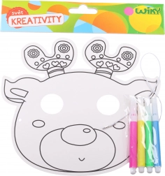 Zabavna maska za bojanje dimenzija 22,5 × 20,5 cm s 4 flomasterima u pakiranju i 6 različitih motiva – idealna za kreativno stvaranje, igre i proslave.