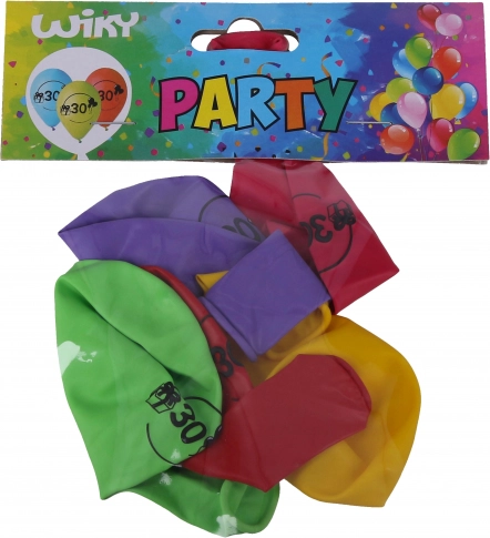 Set od 5 lateks balona 30 cm u mješavini boja s brojem 30. Idealna dekoracija za 30. rođendan ili obljetnicu. Prikladno za napuhavanje zrakom i helijem.
