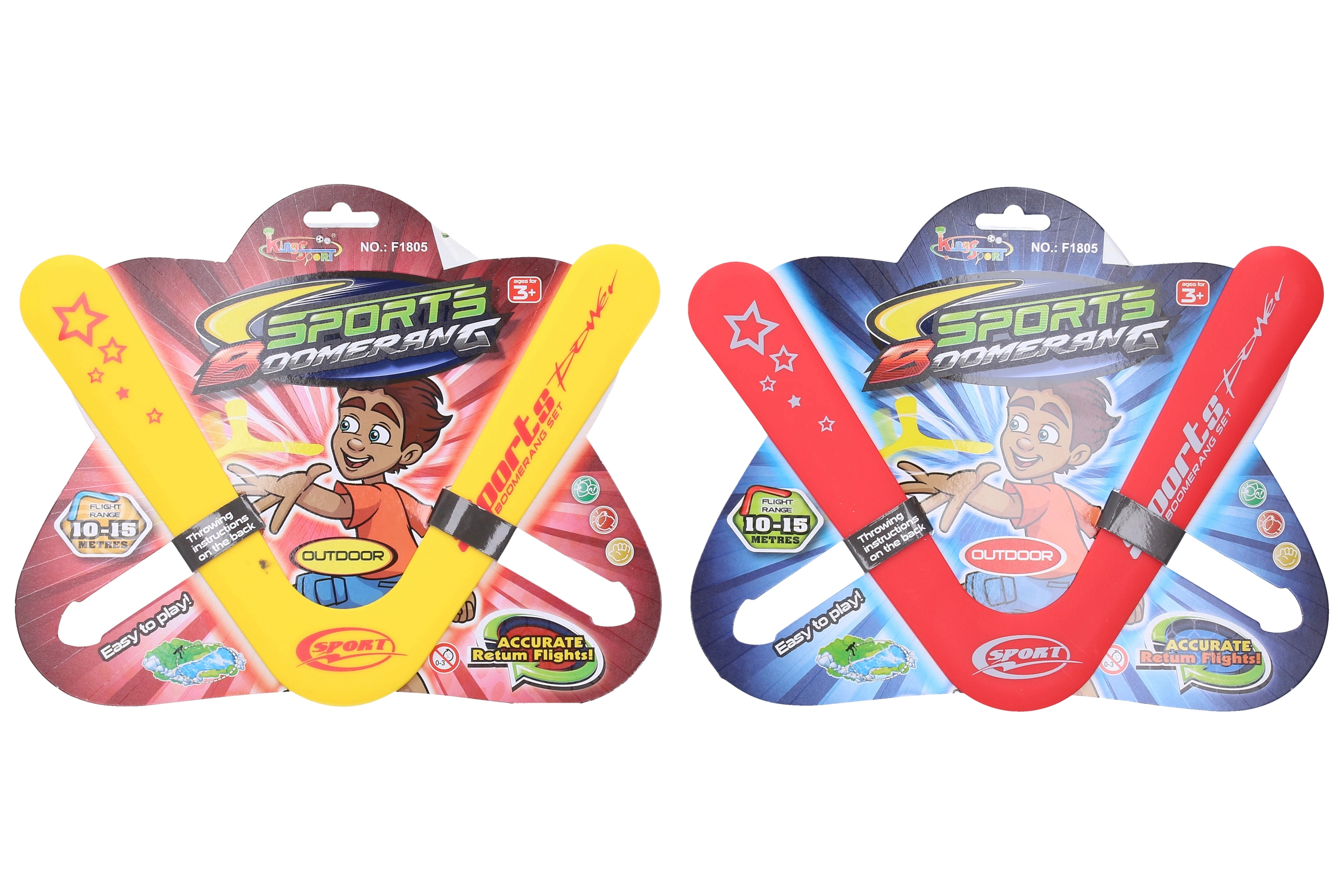 Bumerang za djecu idealan je izbor za zabavu u vrtu, parku i na odmoru. Zahvaljujući promišljenom obliku i laganoj konstrukciji, s bacanjem se snađu i manja djeca, a uz pravilnu tehniku bumerang se lijepo vraća natrag.