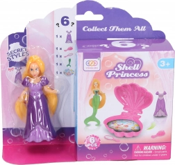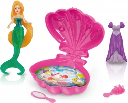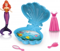 Otkrijte čarobni podvodni svijet s preslatkom igračkom morska vila sa školjkom veličine 9,5 cm. Set sadrži vilu, otvarajuću školjku, male haljinice, ogledalce i češljić. Dostupne su 3 varijante boja školjke – žuta, plava i ljubičasta.