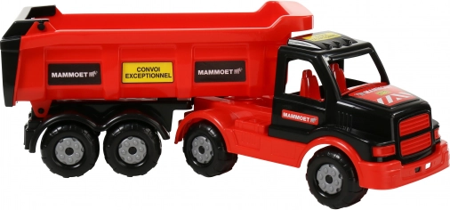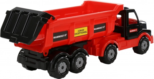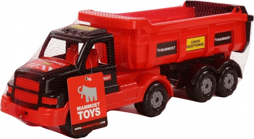 Robustan plastični kiperski kamion MAMMOET oduševit će male graditelje svojim realističnim izgledom i jednostavnim upravljanjem. Zahvaljujući velikoj kiperskoj sandučnoj karoseriji s mogućnošću podizanja idealan je za prijevoz pijeska ili kockica te nudi sate kreativne zabave. Igračka je pakirana u mrežici i ima praktične dimenzije za igru u kući i na otvorenom. Izdržljiva izvedba, kiperska karoserija i slobodni hod kotača jamče udobnu “push-and-go” vožnju.